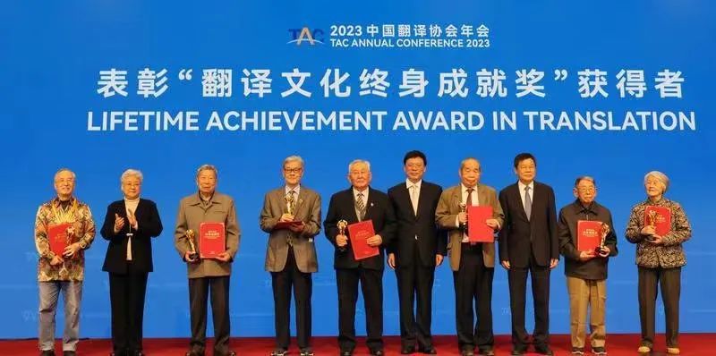 “翻译文化终身成就奖”由中国翻译协会于2006年设立,授予在翻译与对外文化传播和文化交流方面作出杰出贡献、成就卓著、影响广泛、德高望重的翻译家,是中国翻译协会设立的表彰翻译家个人的最高荣誉奖项。该奖项旨在鼓励我国广大翻译工作者向老一辈翻译家学习,继承和发扬他们的敬业精神,提高自身业务素质,为繁荣我国翻译事业作出贡献。至今已有季羡林、许渊冲、杨宪益等38位翻译家获此荣誉称号。2023年,姜桂华、王凤祥、黄宝生、李顺然、李均报、阿尔根拜洪尔、方梦之、何道宽、庄绎传、张道一、朱威烈等11位翻译家被授予此奖项。