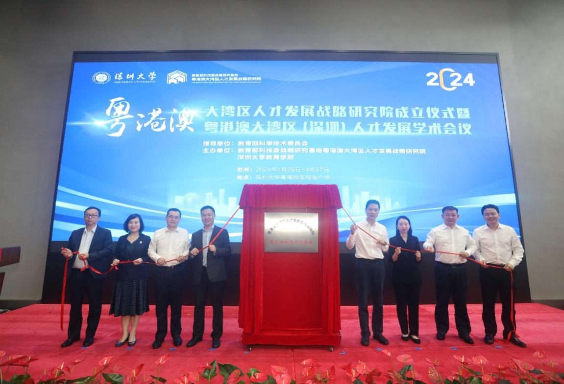 随后,广东省教育厅、深圳市社科院、深圳市人才工作局、深圳市教育局、澳门特别行政区政策研究和区域发展局、深圳大学等单位的领导共同为粤港澳大湾区人才发展战略研究院揭牌。