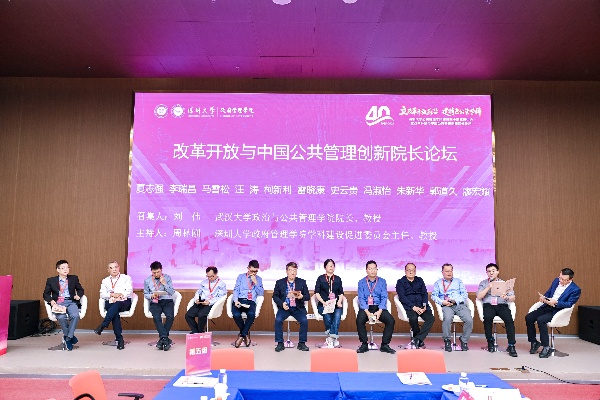 当日下午,深圳大学公共管理学科建设40周年庆典暨改革开放与中国公共管理创新院长论坛在丽湖校区启明楼C101报告厅举行。第一组召集人为武汉大学政治与公共管理学院院长刘伟教授,主持人为深圳大学政府管理学院学科促进委员会主任周林刚教授;吉林大学行政学院院长马雪松教授,浙江财经大学公共管理学院执行院长史云贵教授,南京农业大学公共管理学院院长冯淑怡教授,河海大学公共管理学院院长朱新华教授,哈尔滨工业大学(深圳)人文与社会科学学院院长孙涛教授,复旦大学国际关系与公共事务学院李瑞昌教授, 浙江工商大学公共管理学院院长汪锦军教授,华中农业大学公共管理学院院长柯新利教授,东南大学人文学院院长洪岩璧教授,四川大学公共管理学院院长夏志强教授,西北大学公共管理学院院长雷晓康教授,西南财经大学公共管理学院院长廖宏斌教授,南开大学周恩来政府管理学院副院长郭道久教授,重庆大学公共管理学院副院长汪涛教授,中国科学院大学公共政策与管理学院院长助理李颖明等参与研讨;第二组召集人为山东大学政治学与公共管理学院院长马奔教授,主持人为深圳大学政府管理学院副院长谷志军教授;兰州大学管理学院院长王康周教授,南昌大学公共政策与管理学院院长尹利民教授,中南大学公共管理学院院长许源源教授,天津大学管理与经济学部主任杜慧滨教授,华中师范大学公共管理学院院长徐增阳教授,湖南大学公共管理学院院长谭海波教授,暨南大学公共管理学院(应急管理学院)院长戴胜利教授,华南理工大学公共管理学院副院长管兵教授,中国地质大学公共管理学院副院长王忠教授,南京大学政府管理学院院长助理陈志刚教授,中南财经政法大学公共管理学院梁辉副教授等参与研讨;第三组召集人为湘潭大学公共管理学院院长梁丽芝教授,主持人为深圳大学政府管理学院副院长吴海燕教授;湖南农业大学公共管理与法学学院院长王薇教授,湖北大学公共管理学院院长李荣娟教授,黑龙江大学政府管理学院院长袁洪英教授,云南大学政府管理学院院长蒋红教授,海南大学国际旅游与公共管理学院执行院长徐艳晴教授,山西财经大学公共管理学院副院长刘海燕副教授,内蒙古大学公共管理学院副院长那岚业教授,华南农业大学公共管理学院副院长贾海薇教授,山西财经大学MPA中心主任李娟教授,云南大学政府管理学院廖林燕教授等参与研讨;第四组召集人为郑州大学政治与公共管理学院高卫星教授,主持人为深圳大学政府管理学院特聘教授王玉主;广西大学公共管理学院院长聂鑫教授,广东外语外贸大学社会与公共管理学院院长涂斌教授,安徽师范大学法学院金太军教授,中国海洋大学国际事务与公共管理学院副院长弓联兵教授,上海财经大学公共管理学院副院长冯苏苇教授,华南师范大学政治与公共管理学院副院长孙中伟教授,山西财经大学公共管理学院副院长段宇波教授,云南大学政府管理学院 陈忠言副教授,中国农业大学人文与发展学院姚清晨副教授,山西财经大学公共管理学院靳永广副教授等参与研讨;第五组召集人为东北大学文法学院党委书记隋永强,主持人深圳大学政府管理学院院长助理、学科促进委员会副主任袁方成教授;厦门大学公共事务学院院长于文轩教授,广西师范大学政治与公共管理学院院长周超教授,广州大学公共管理学院党委副书记万朝春,天津大学管理与经济学部许恒周教授,英国切斯特大学商学研究院客座教授孙鸿,东北大学文法学院张平教授,天津大学管理与经济学部邹宏阳副教授,三亚学院社会学院高益青副教授,清华大学公共管理学院党委副书记唐啸副教授,中国矿业大学公共管理学院翟军亮副教授等参与研讨。与会专家高度肯定了深圳大学公共管理学科四十年来的建设成绩,认为该学科积淀深厚、成果丰硕、特色鲜明;在行政体制改革、科技产业政策、特大城市治理、社会组织管理等领域形成了学科特色。院长论坛聚焦公共管理创新实践与学科发展未来,通过五组专题论坛,就改革开放与中国公共管理创新的主题作深入研讨,促进了各学院之间的交流与合作。
