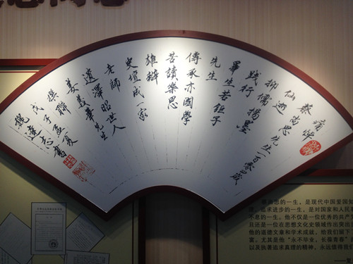 魏达志教授为“蔡尚思励志馆”题写了馆名(魏碑体),大堂对联“百年春秋勤学苦研终成学界泰斗;万千桃李精栽细护始为国家栋梁。” (爨宝子体),以及悼念蔡尚思先生扇面(行书体)等,得到复旦大学参会嘉宾和当地领导与艺术家的高度评价。