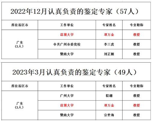 近期,全国哲学社会科学规划办公室公布了《2022年12月认真负责的鉴定专家》(全国57人,广东省3人)和《2023年3月认真负责的鉴定专家》(全国49人,广东省3人)名单,我校体育学院邓万金教授两度入选,充分体现出他认真负责的鉴定态度。