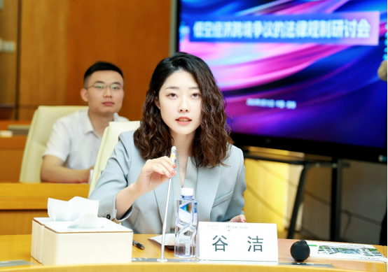 在主题演讲环节,由泰和泰深圳低空经济法律研究院研究员谷洁主持。四位嘉宾分别围绕不同主题带来了精彩的演讲。
