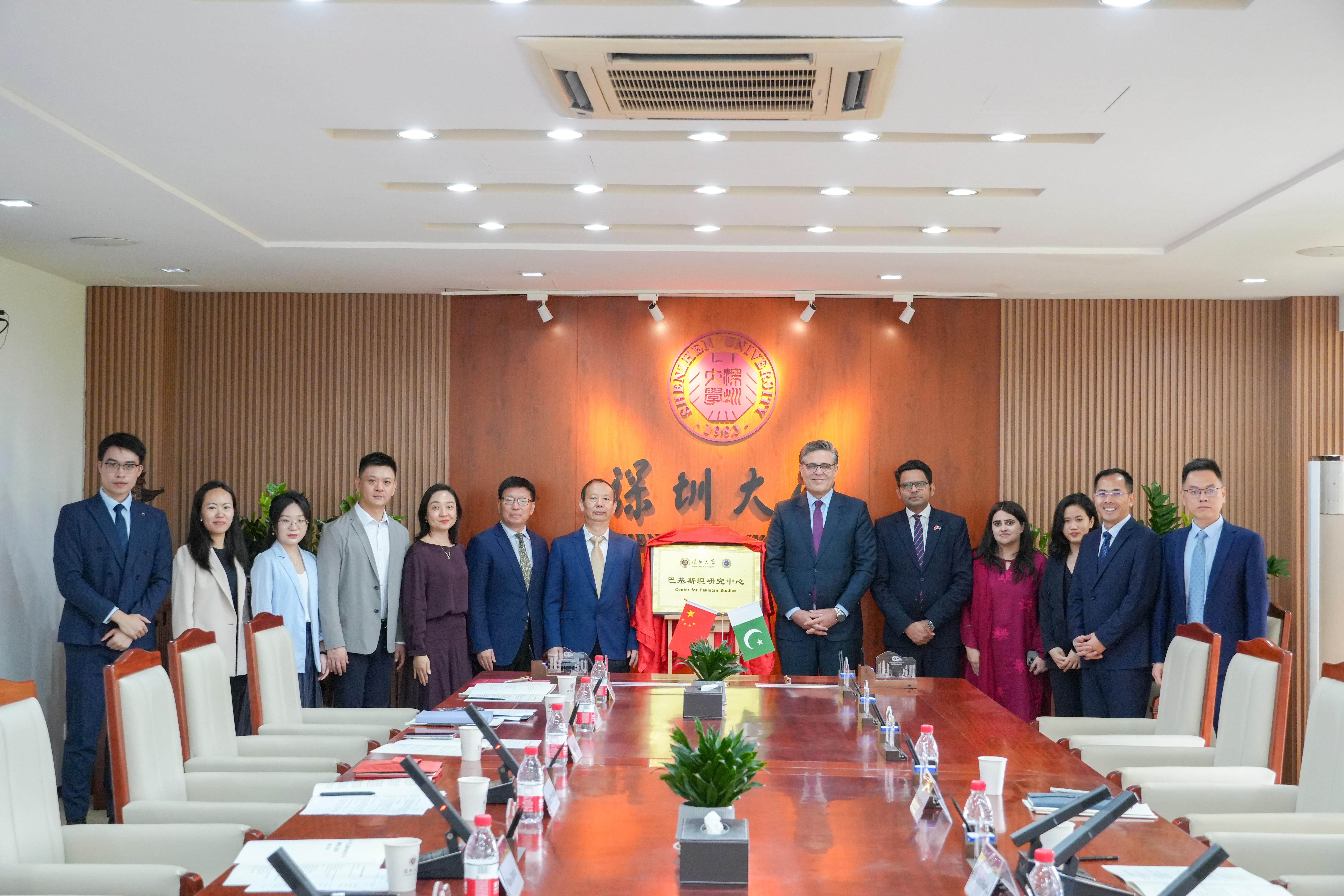 4月16日上午,巴基斯坦驻华大使、驻广州总领事卡里尔·哈什米一行来访深圳大学,深圳大学校长毛军发会见来宾,双方在粤海校区汇元楼401会议室签署合作备忘录,共建“深圳大学巴基斯坦研究中心”,并共同为中心揭牌。毛军发在揭牌仪式上致辞。他表示,深圳大学目前已与巴基斯坦的九所高校建立了联系,在国际学生培养、学生交流交换方面取得扎实进展;还与巴基斯坦工程委员会共同成立“一带一路”智能物联网联合研究中心,与“全球...